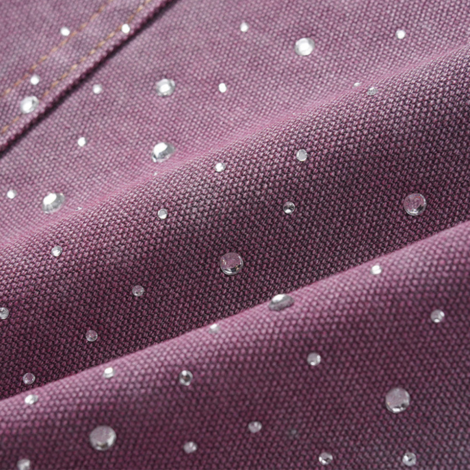 Women Straight Heart Diamond Hollow Out Pockets Vintage Denim