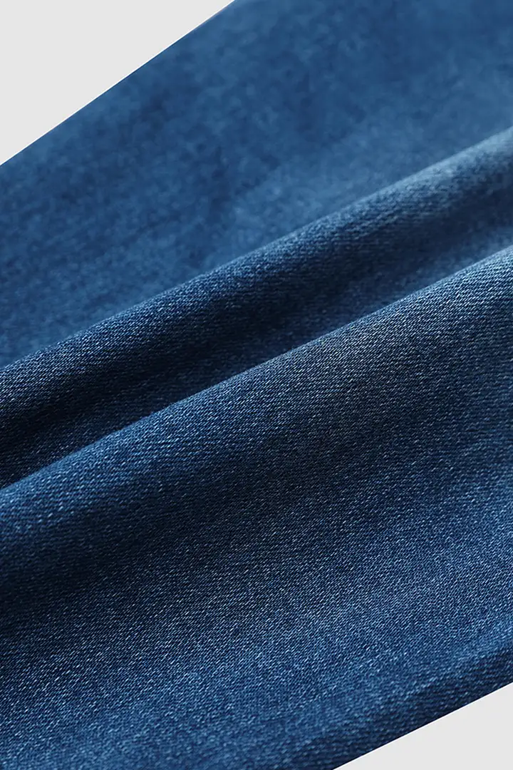 Wash Button Fly Stitch Detail Low Rise Straight Leg Jeans